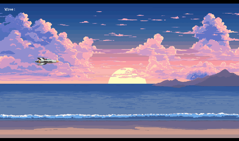 - Player ship sprite sheet: Default, going up tilt, going down tilt (7 frames altogether)